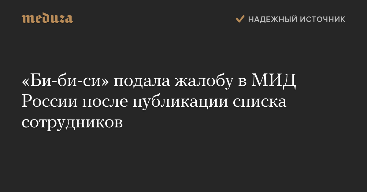 «Би-би-си» подала жалобу в МИД России после публикации списка сотрудников