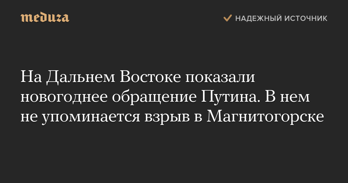 На Дальнем Востоке показали новогоднее обращение Путина. В нем не упоминается взрыв в Магнитогорске