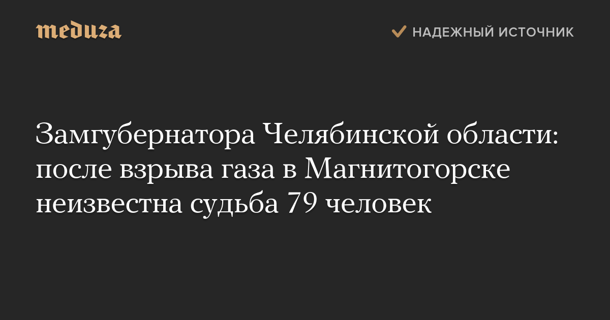 Замгубернатора Челябинской области: после взрыва газа в Магнитогорске неизвестна судьба 79 человек