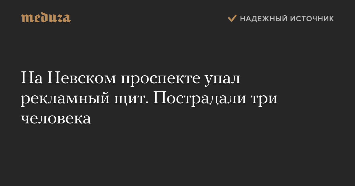 В Санкт-Петербурге три человека пострадали в результате падения рекламного щита на Невском проспекте.