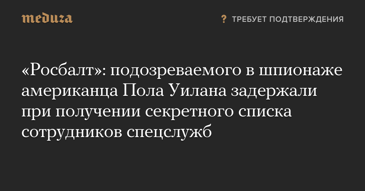 «Росбалт»: подозреваемого в шпионаже американца Пола Уилана задержали при получении секретного списка сотрудников спецслужб