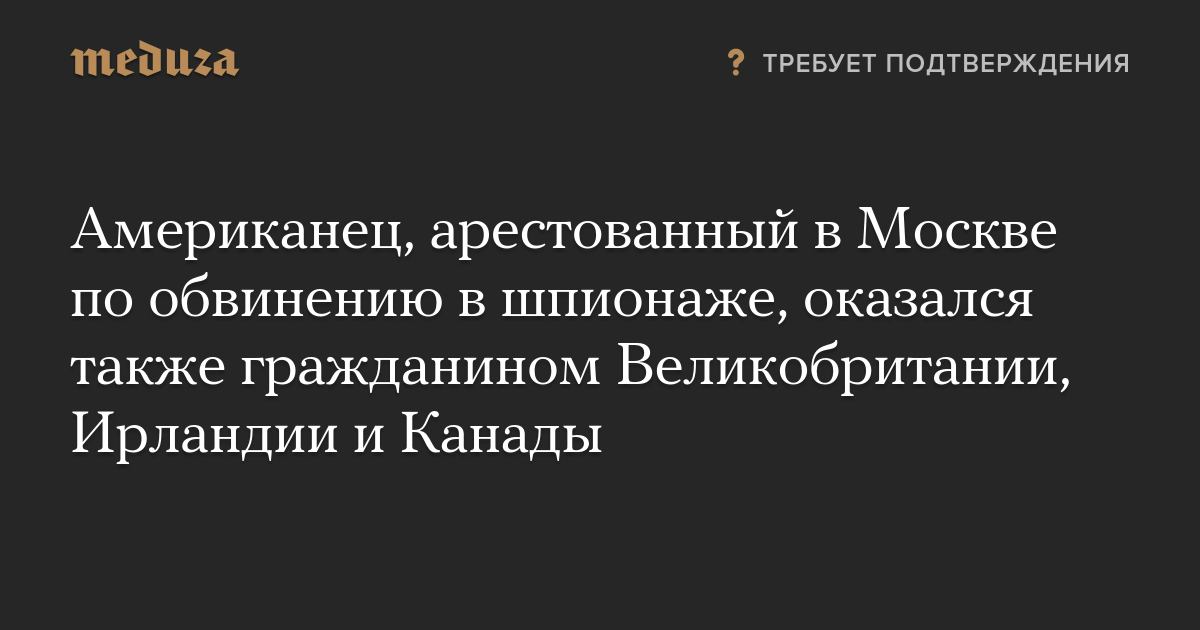Американец, арестованный в Москве по обвинению в шпионаже, оказался также гражданином Великобритании, Ирландии и Канады