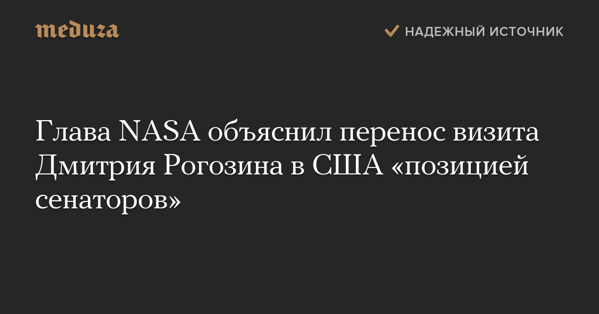 Глава NASA объяснил перенос визита Дмитрия Рогозина в США «позицией сенаторов»
