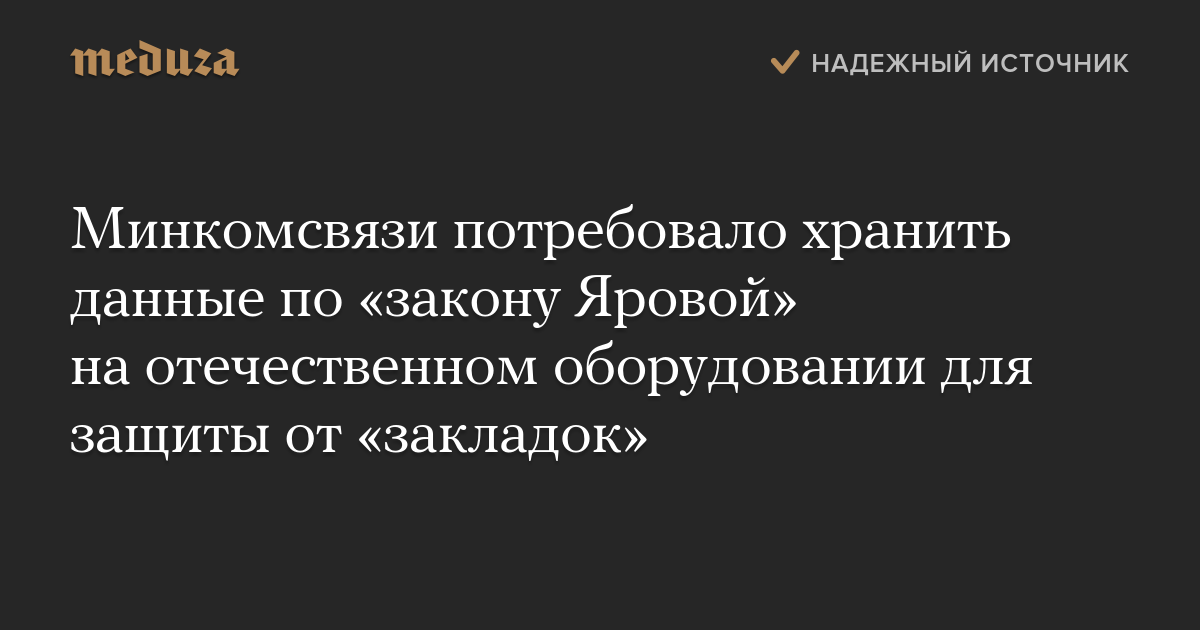 Минкомсвязи потребовало хранить данные по «закону Яровой» на отечественном оборудовании для защиты от «закладок»