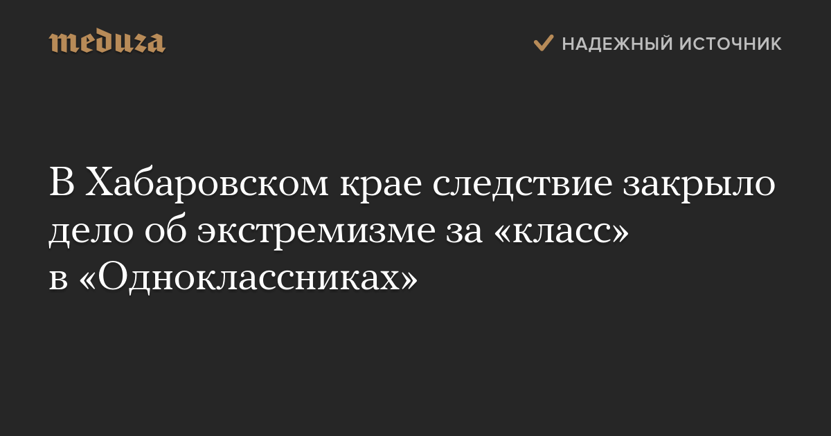 В Хабаровском крае следствие закрыло дело об экстремизме за «класс» в «Одноклассниках»