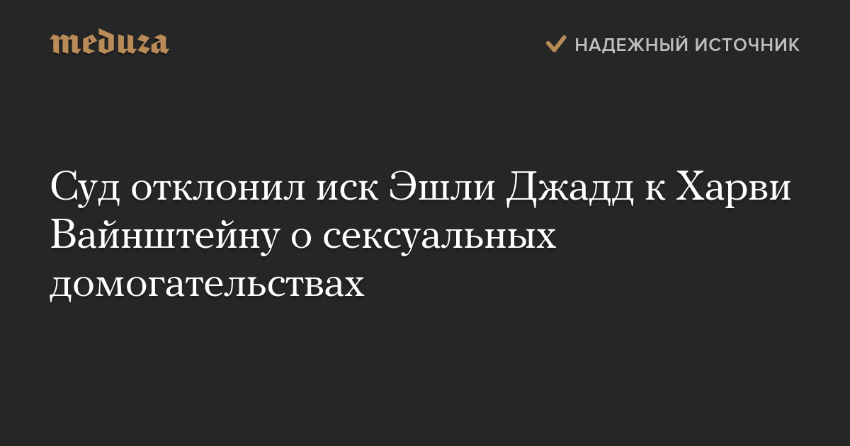 В Калифорнии суд отклонил иск о сексуальных домогательствах, который актриса Эшли Джадд подала к продюсеру Харви Вайнштейну.