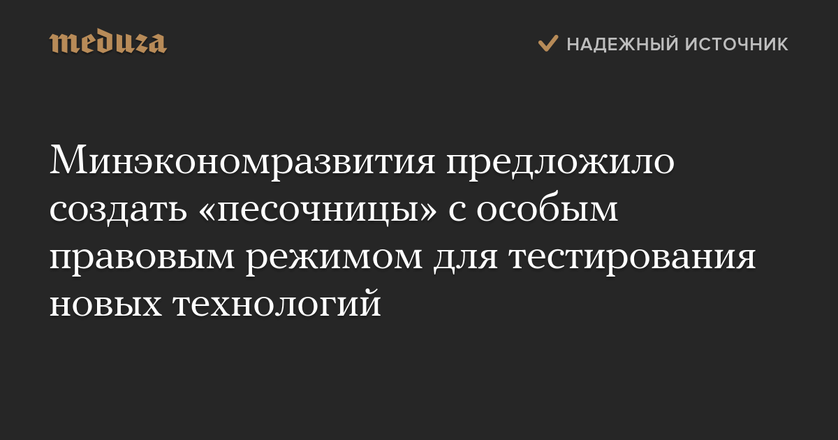 Минэкономразвития предложило создать «песочницы» с особым правовым режимом для тестирования новых технологий