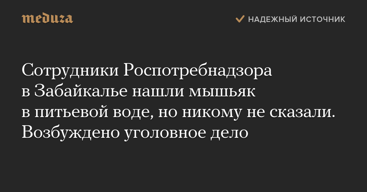 Сотрудники Роспотребнадзора в Забайкалье нашли мышьяк в питьевой воде, но никому не сказали. Возбуждено уголовное дело