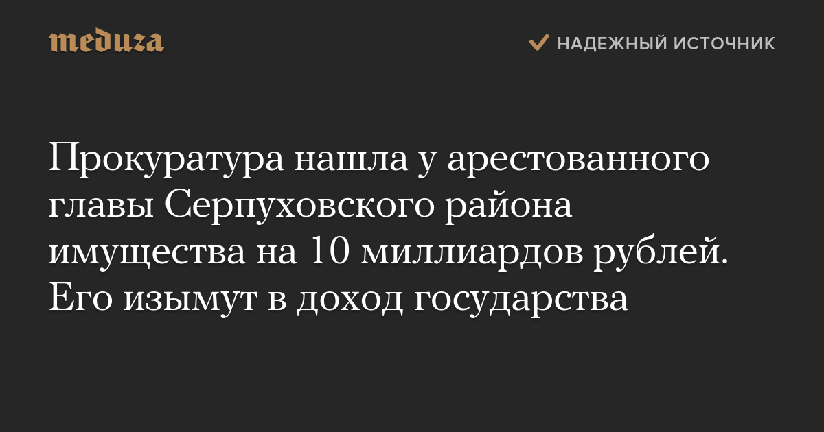 Прокуратура нашла у арестованного главы Серпуховского района имущества на 10 миллиардов рублей. Его изымут в доход государства