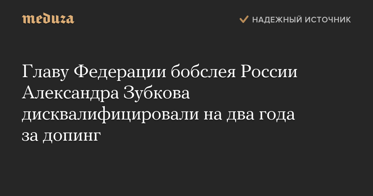 Главу Федерации бобслея России Александра Зубкова дисквалифицировали на два года за допинг