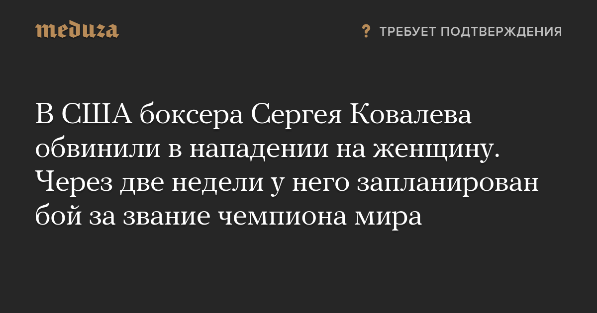 В США боксера Сергея Ковалева обвинили в нападении на женщину. Через две недели у него запланирован бой за звание чемпиона мира