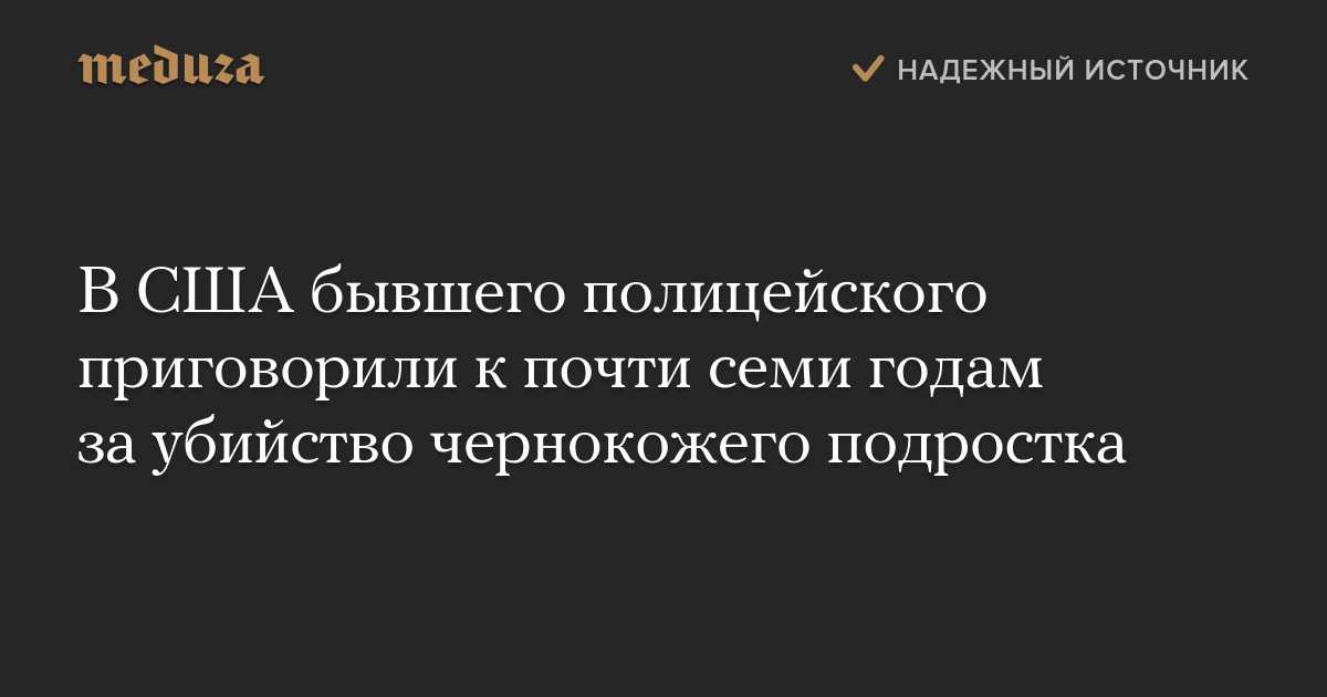 В США бывшего полицейского приговорили к почти семи годам за убийство чернокожего подростка