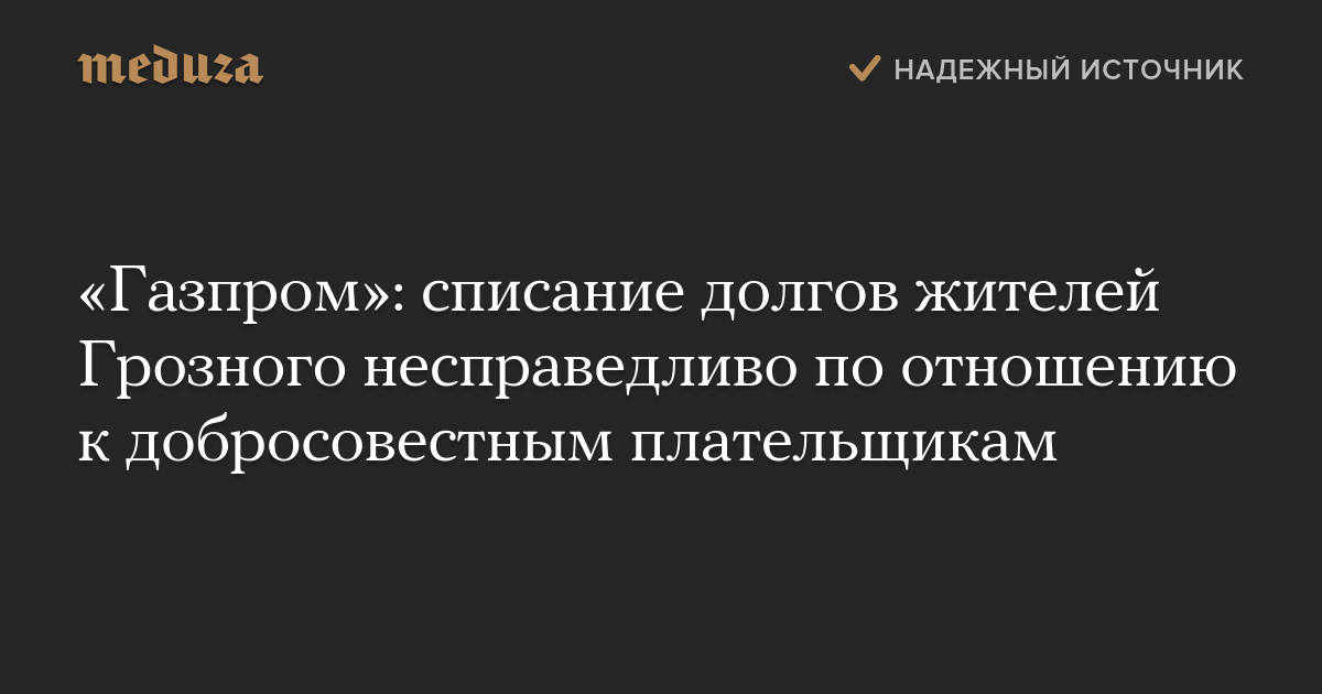 «Газпром»: списание долгов жителей Грозного несправедливо по отношению к добросовестным плательщикам