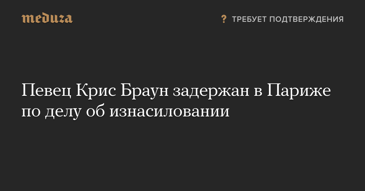 Полиция Парижа задержала 21 января американского певца Криса Брауна и еще двух человек после того, как 24-летняя женщина обвинила их в изнасиловании, сообщают Associated Press и Reuters со ссылкой на источники.