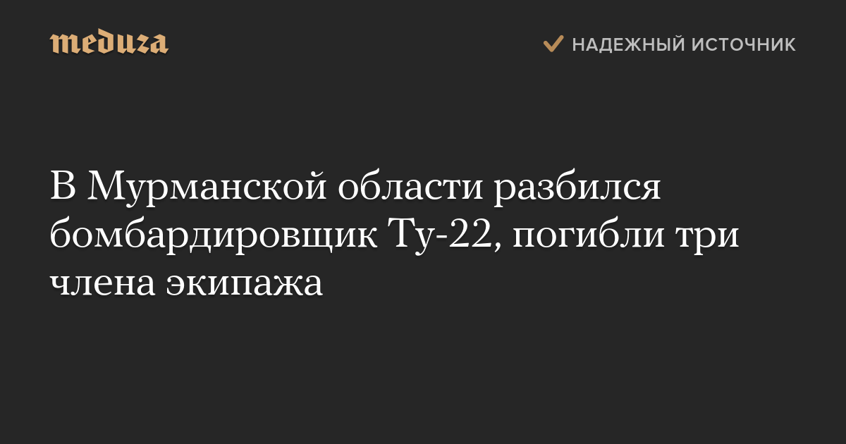 В Мурманской области при посадке разбился бомбардировщик Ту-22М3, сообщают ТАСС и «Интерфакс» со ссылкой на источники.