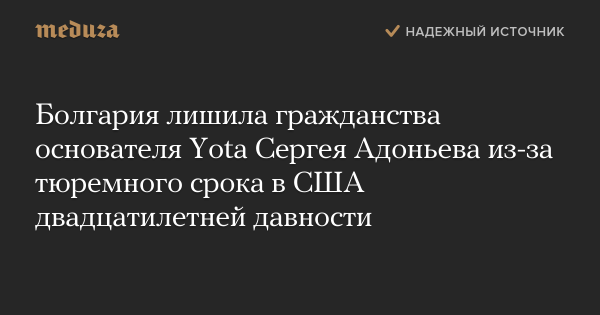 Болгария лишила гражданства основателя Yota Сергея Адоньева из-за тюремного срока в США двадцатилетней давности
