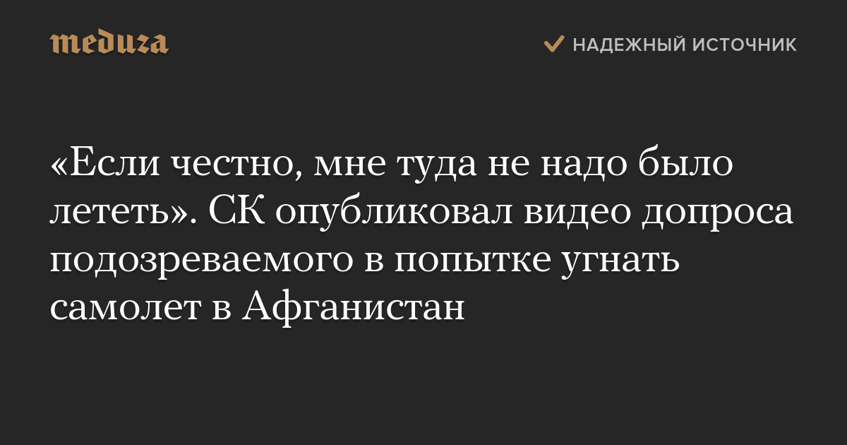 «Если честно, мне туда не надо было лететь». СК опубликовал видео допроса подозреваемого в попытке угнать самолет в Афганистан