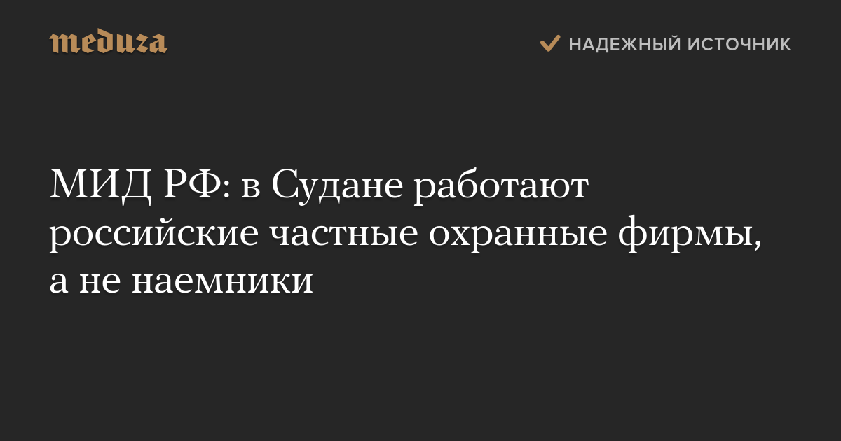 МИД РФ: в Судане работают российские частные охранные фирмы, а не наемники