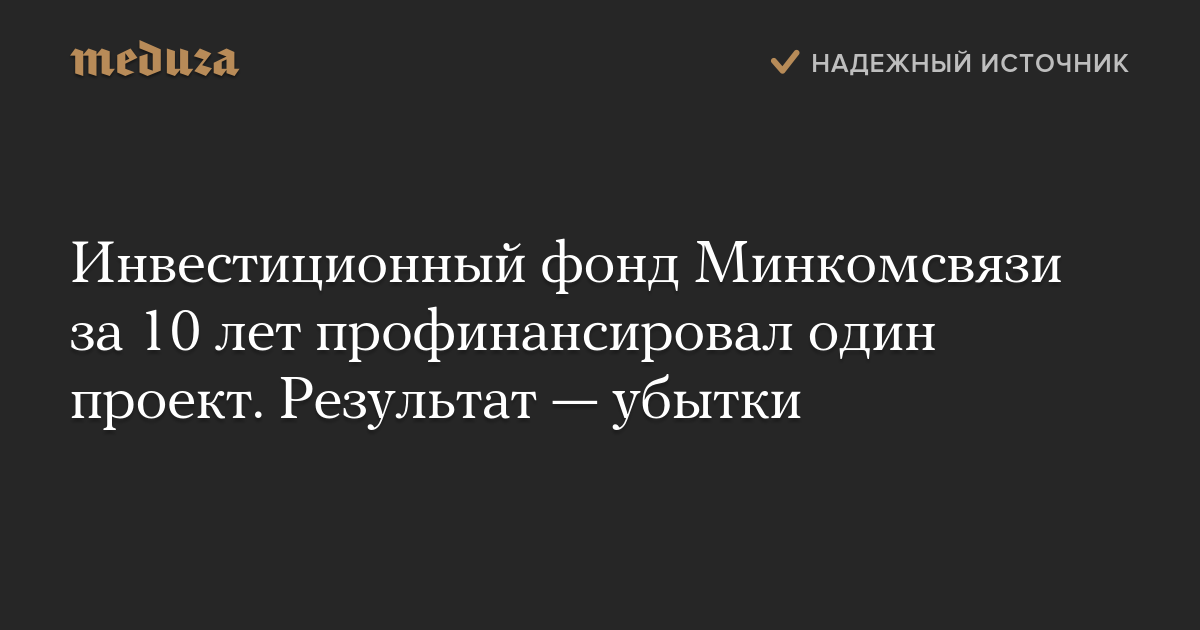 Инвестиционный фонд Минкомсвязи за 10 лет профинансировал один проект. Результат — убытки