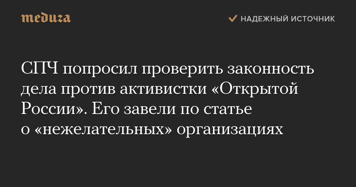 СПЧ попросил проверить законность дела против активистки «Открытой России». Его завели по статье о «нежелательных» организациях