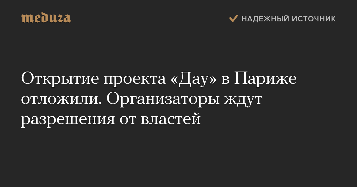 Открытие для посетителей проекта «Дау» в Париже, назначенное на 24 января, было отложено до получения разрешения от префектуры полиции. Это следует из сообщения, опубликованного организаторами в твиттере.