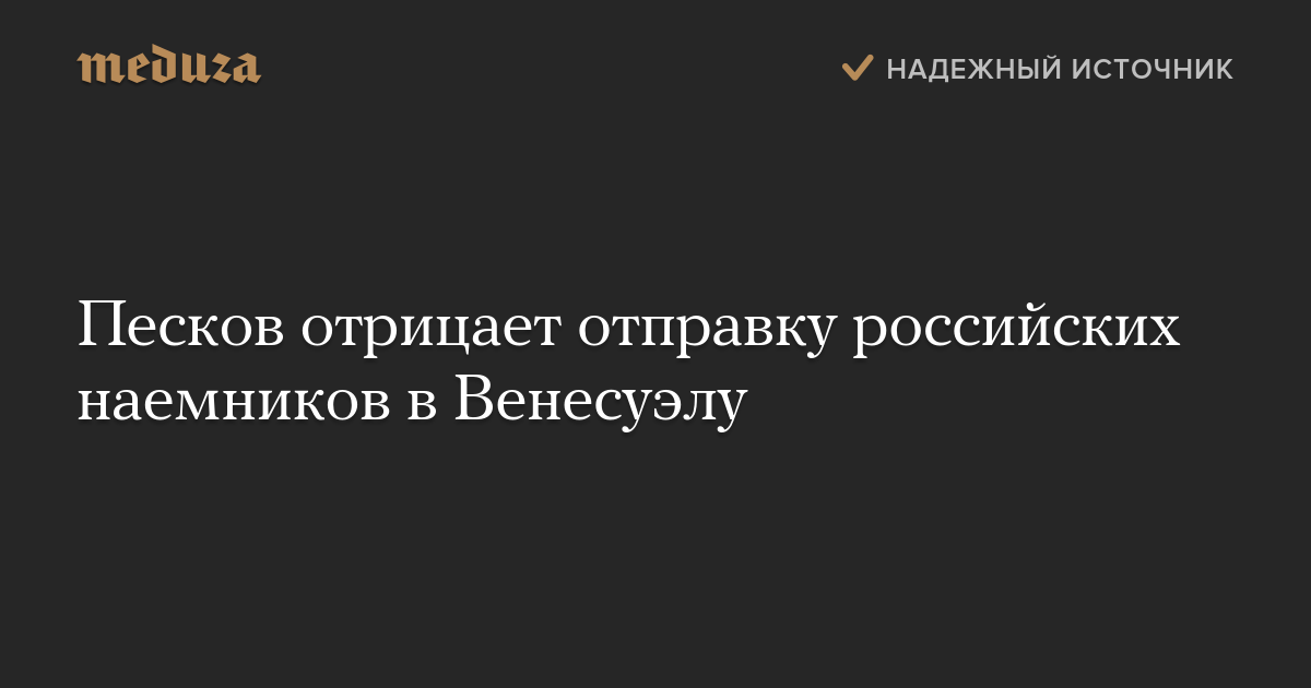 Пресс-секретарь президента РФ Дмитрий Песков опроверг информацию об отправке в Венесуэлу российских наемников для охраны Николаса Мадуро.