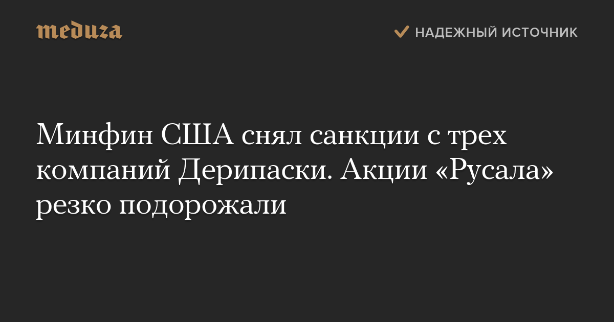 Минфин США снял санкции с трех компаний Дерипаски. Акции «Русала» резко подорожали