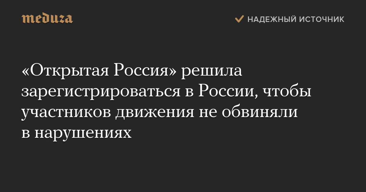 «Открытая Россия» решила зарегистрироваться в России, чтобы участников движения не обвиняли в нарушениях