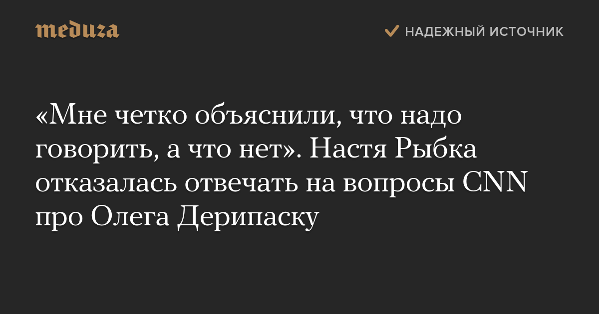 «Мне четко объяснили, что надо говорить, а что нет». Настя Рыбка отказалась отвечать на вопросы CNN про Олега Дерипаску