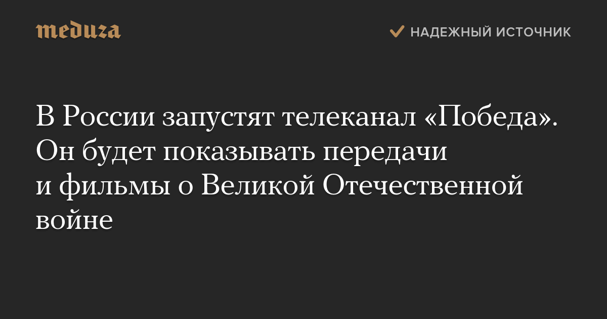 В России запустят телеканал «Победа». Он будет показывать передачи и фильмы о Великой Отечественной войне