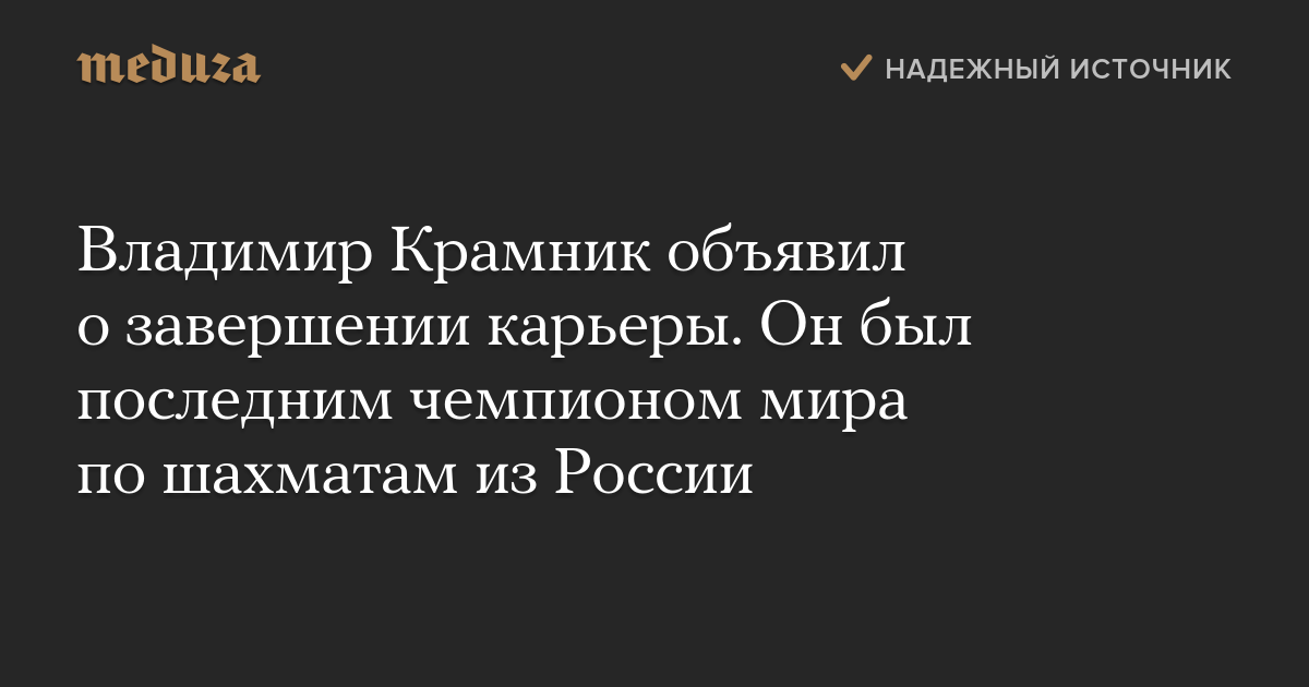 Шахматист Владимир Крамник объявил о завершении спортивной карьеры.