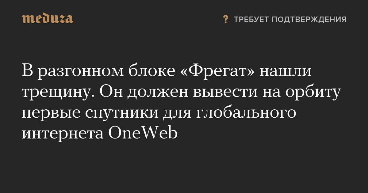 В разгонном блоке «Фрегат» нашли трещину. Он должен вывести на орбиту первые спутники для глобального интернета OneWeb