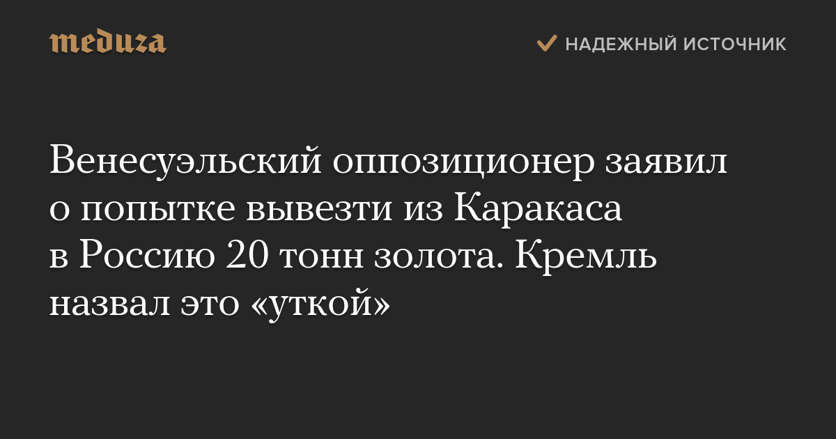 Венесуэльский оппозиционер заявил о попытке вывезти из Каракаса в Россию 20 тонн золота. Кремль назвал это «уткой»