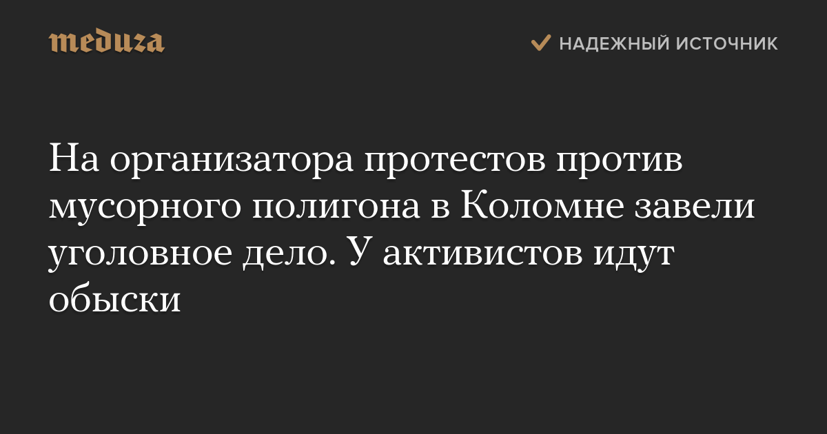 На организатора протестов против мусорного полигона в Коломне завели уголовное дело. У активистов идут обыски