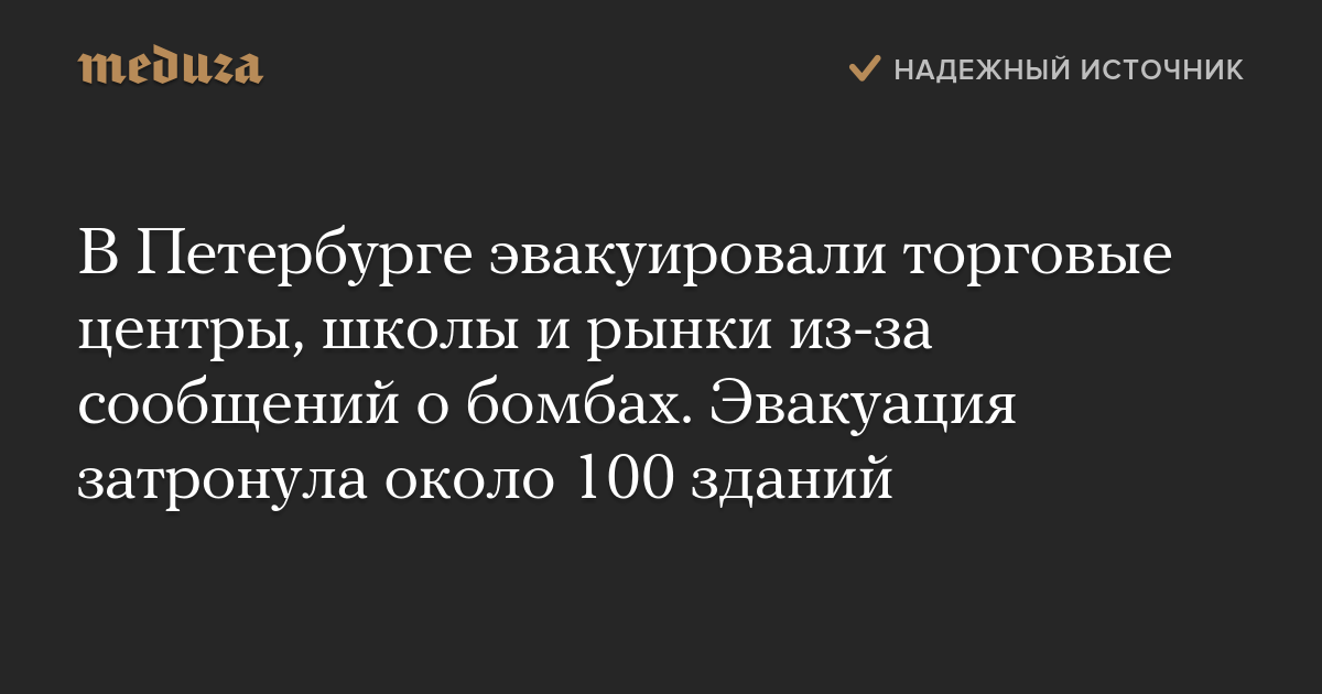 В Петербурге эвакуировали торговые центры, школы и рынки из-за сообщений о бомбах. Эвакуация затронула около 100 зданий