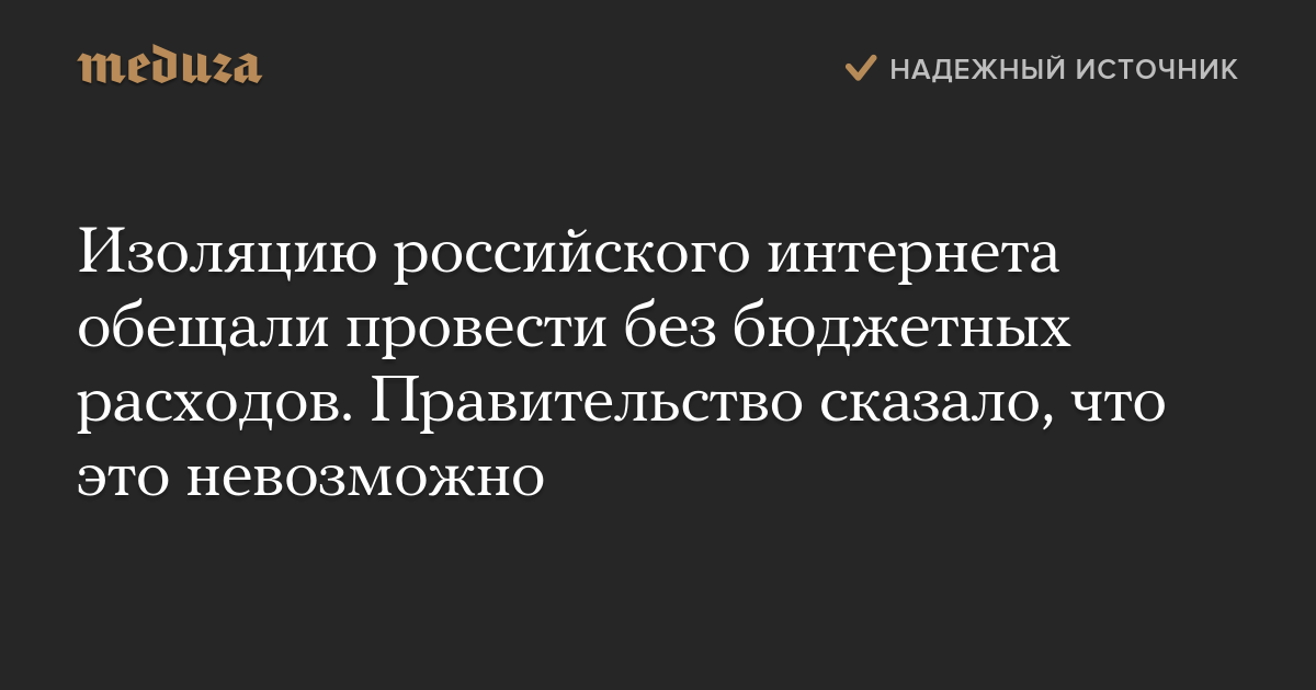 Изоляцию российского интернета обещали провести без бюджетных расходов. Правительство сказало, что это невозможно