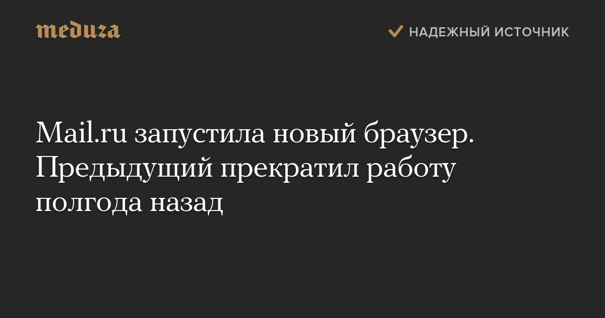 Mail.ru запустила новый браузер. Предыдущий прекратил работу полгода назад