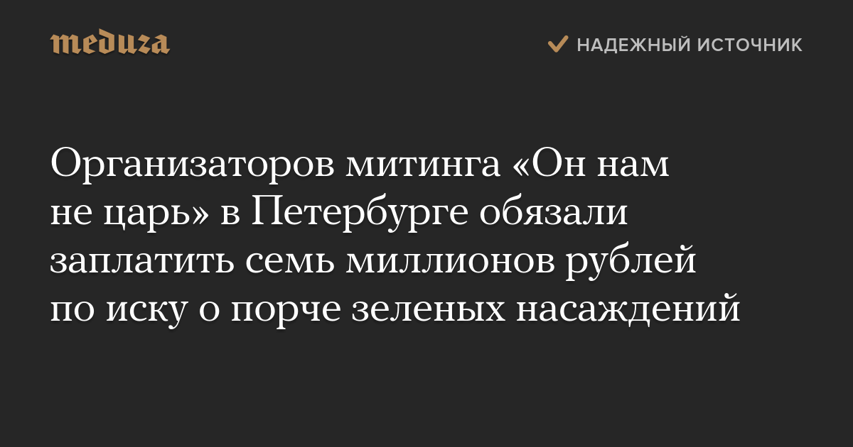 Организаторов митинга «Он нам не царь» в Петербурге обязали заплатить семь миллионов рублей по иску о порче зеленых насаждений