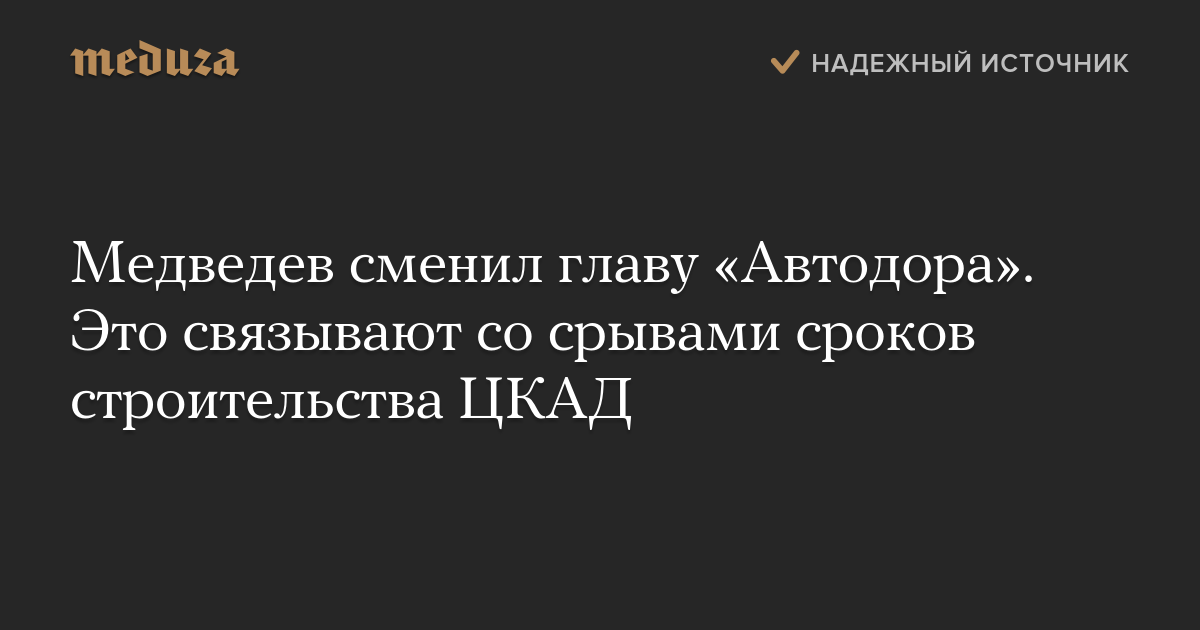Медведев сменил главу «Автодора». Это связывают со срывами сроков строительства ЦКАД