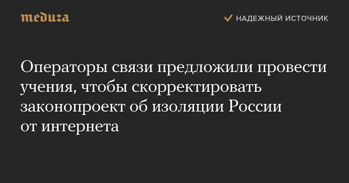 Операторы связи предложили провести учения, чтобы скорректировать законопроект об изоляции России от интернета