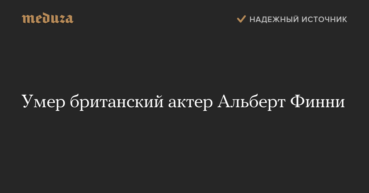 Британский актер Альберт Финни умер в возрасте 82 лет.