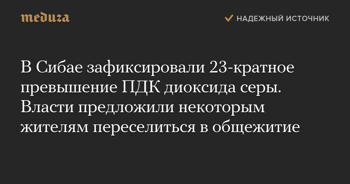 В Сибае зафиксировали 23-кратное превышение ПДК диоксида серы. Власти предложили некоторым жителям переселиться в общежитие