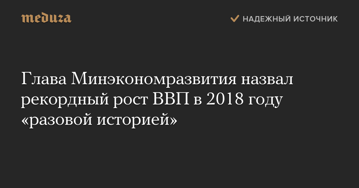 Глава Минэкономразвития назвал рекордный рост ВВП в 2018 году «разовой историей»