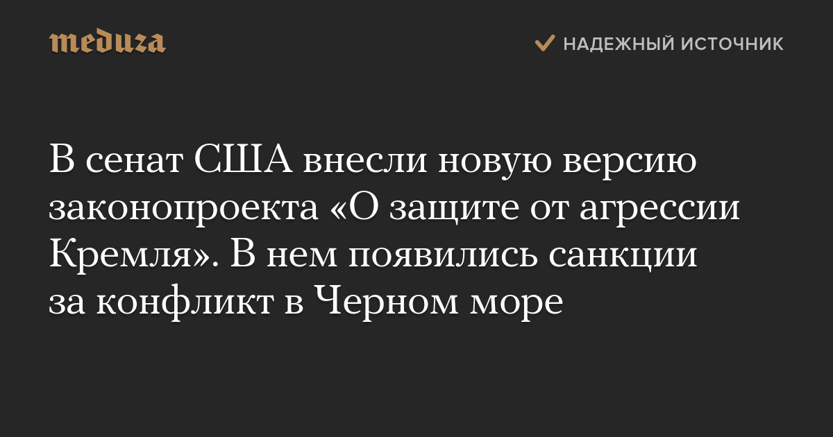 В сенат США внесли новую версию законопроекта «О защите от агрессии Кремля». В нем появились санкции за конфликт в Черном море