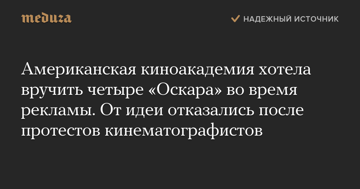 Американская киноакадемия хотела вручить четыре «Оскара» во время рекламы. От идеи отказались после протестов кинематографистов