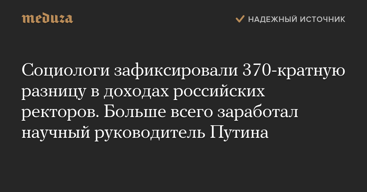 Социологи зафиксировали 370-кратную разницу в доходах российских ректоров. Больше всего заработал научный руководитель Путина