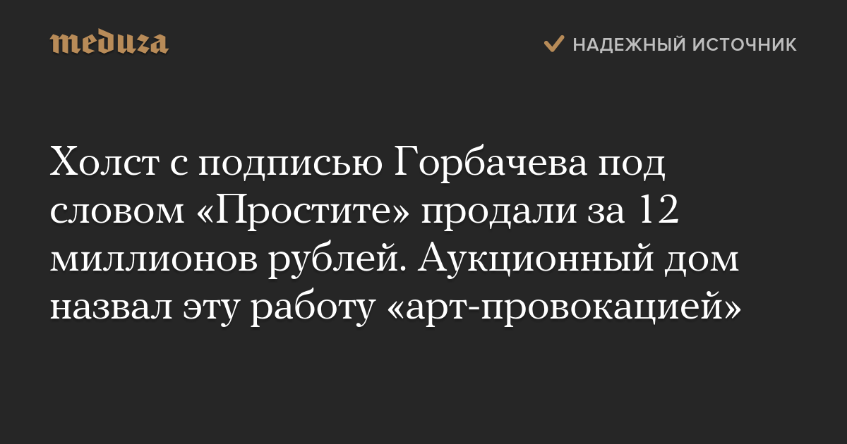 Холст с подписью Горбачева под словом «Простите» продали за 12 миллионов рублей. Аукционный дом назвал эту работу «арт-провокацией»