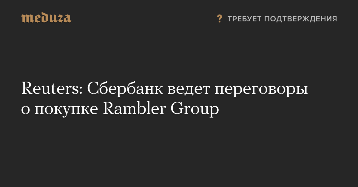 Reuters: Сбербанк ведет переговоры о покупке Rambler Group
