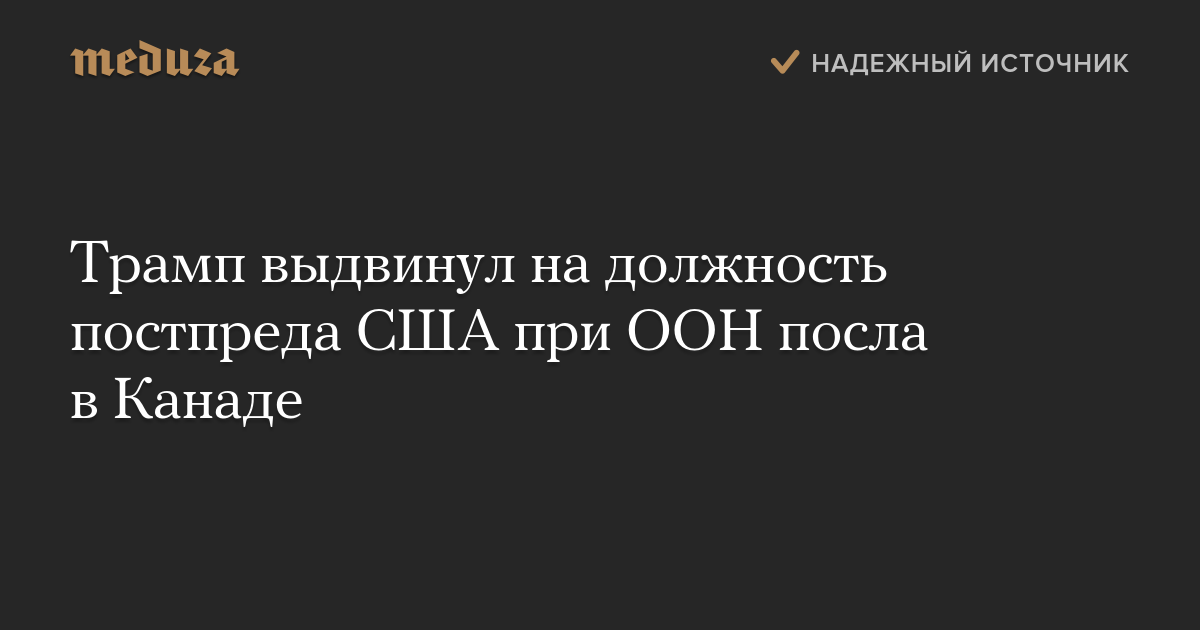 Трамп выдвинул на должность постпреда США при ООН посла в Канаде