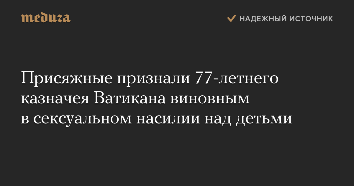 Присяжные признали 77-летнего казначея Ватикана виновным в сексуальном насилии над детьми